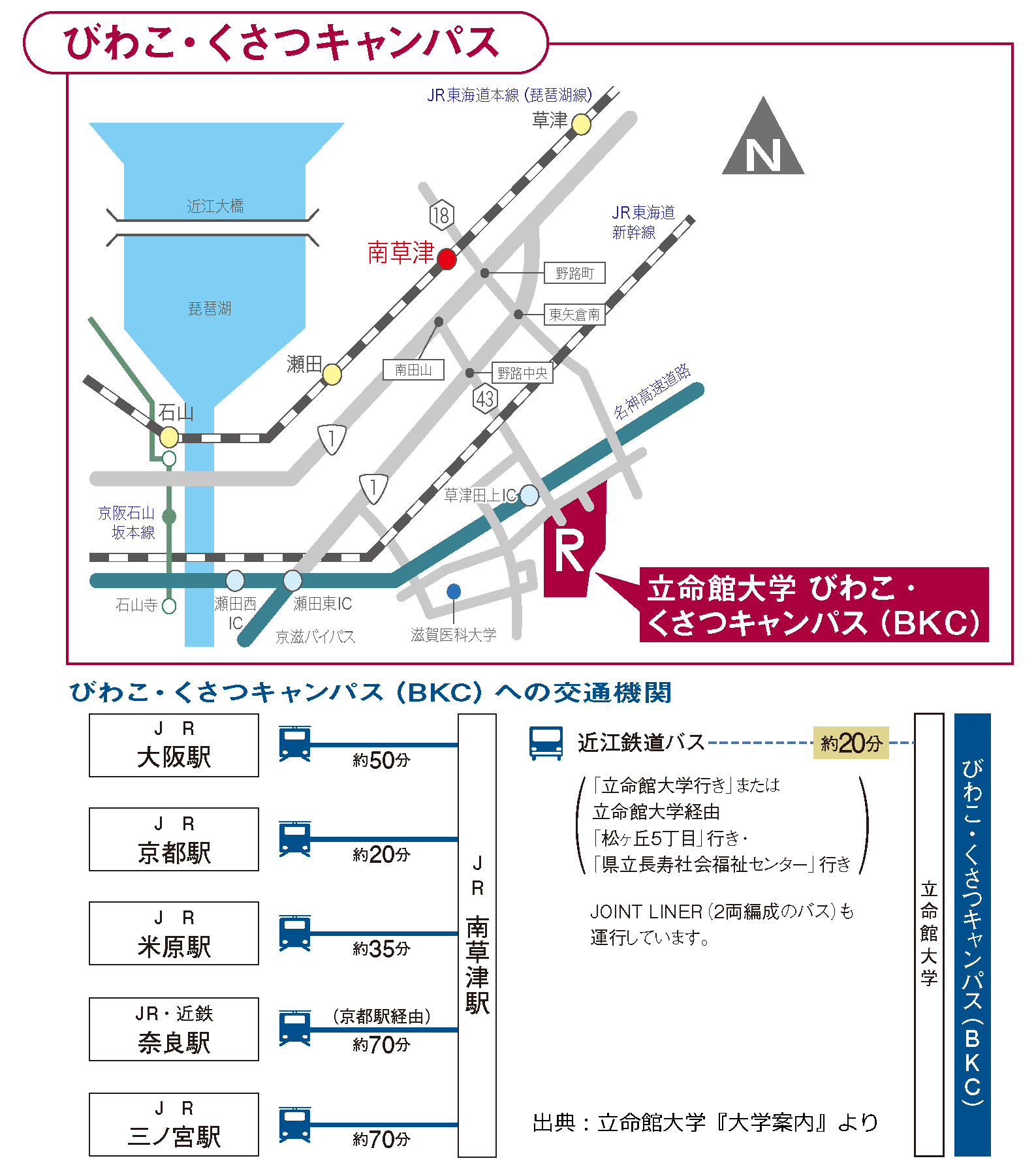 ■バス |JR南草津駅から、近江鉄道バス「立命館大学」まで